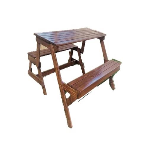 میز و نیمکت چوبی دو کاره یکی از لوازم مهم در مهد کودک، خانه‌های بازی، خانه مشاغل و.. هر جایی که کودکان برای لحظاتی با یکدیگر هستند کاربرد دارد. این نیمکت همانند یک مبل چند نفره با داشتن ارتفاعی مناسب در میز و صندلی طوری طراحی شده تا کودکان راحت بدونه هیچ‌گونه سختی برای نشست و برخاست از آن استفاده کنند. این محصول هم به‌شکل نیمکت دارای تکیه گاه و هم به‌شکل میز و نیمکت قابل استفاده است.